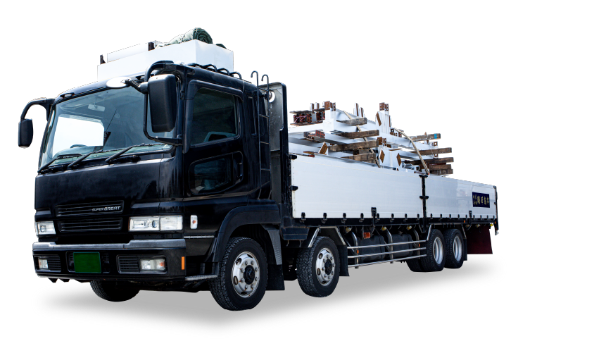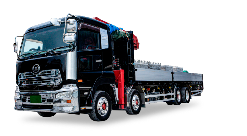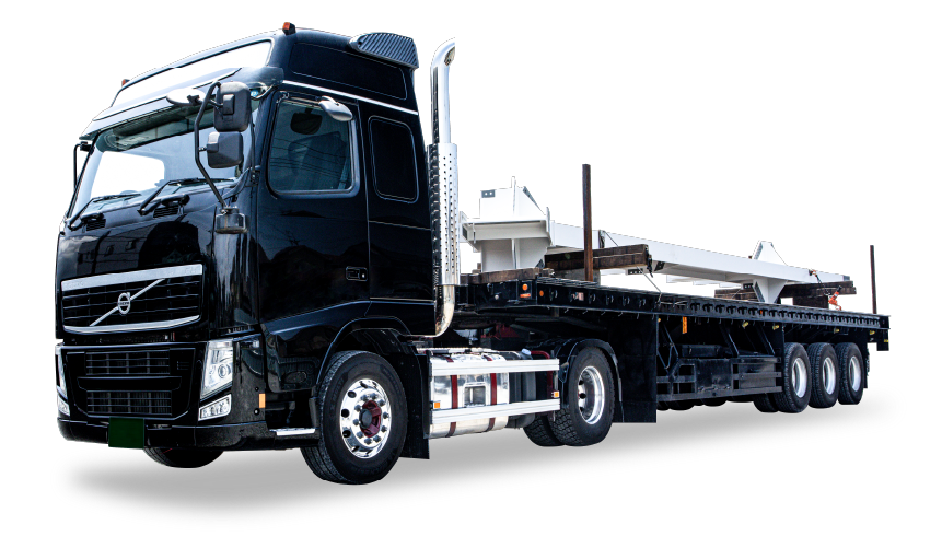 翔華商事が主に取り扱う保有車両は大型が中心で、特殊車両通行許可申請を行なっているため長さ:12,000mm 幅:2,500mm 地上高:3,800mmを超える貨物の輸送が可能です。また、クレーン付き車両での自主荷役も承ります。